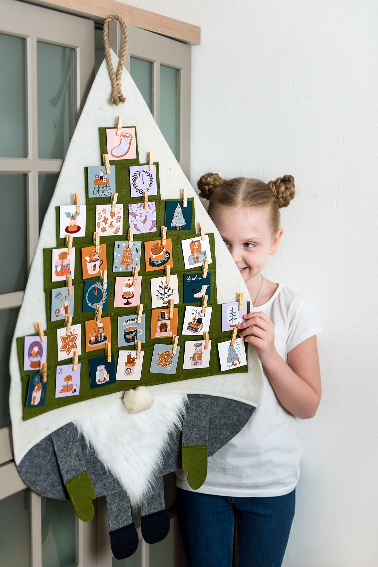 - Карточки с интересными заданиями на каждый день, например, сделать открытки друзьям, сходить на новогоднее представление или поиграть в игру на запоминание. Задания развивают полезные навыки, например, рисование и фантазию; память; укрепляют семейные традиции. В этом сезоне добавлено 20 новых заданий для детей более старшего возраста, календарь подойдет деткам от 3 до 12 лет (±).